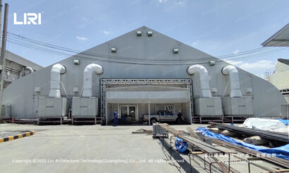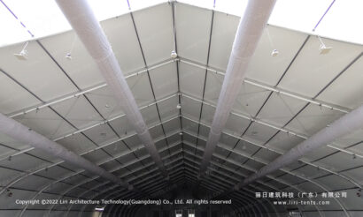 Curve Tent is not only strong but also durable, the wind retardancy can reach 100km/h(0.5kn/m²). Curve Tent can be flexibly removed and expanded with its modular structure, it is easily assembled and dismantled, the storage volume is small. It can be applied in many temporary events as well as the Big Tent series, also it’s a good choice for permanent building. Due to the bent aluminum roof beams and perfect roof cover tensioning system, the wind resistance and snow loading capability are stronger.